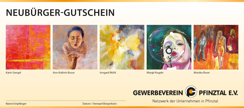 Der Neubürger-Gutschein ist ein gemeinsames Projekt der Gemeinde Pfinztal und des Gewerbevereins Pfinztal. Er ist ein "Willkommensgruß" an unsere Neubürger.